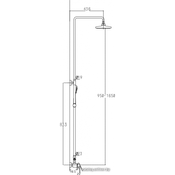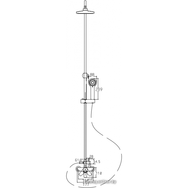 душевая система, настенный монтаж, механический смеситель