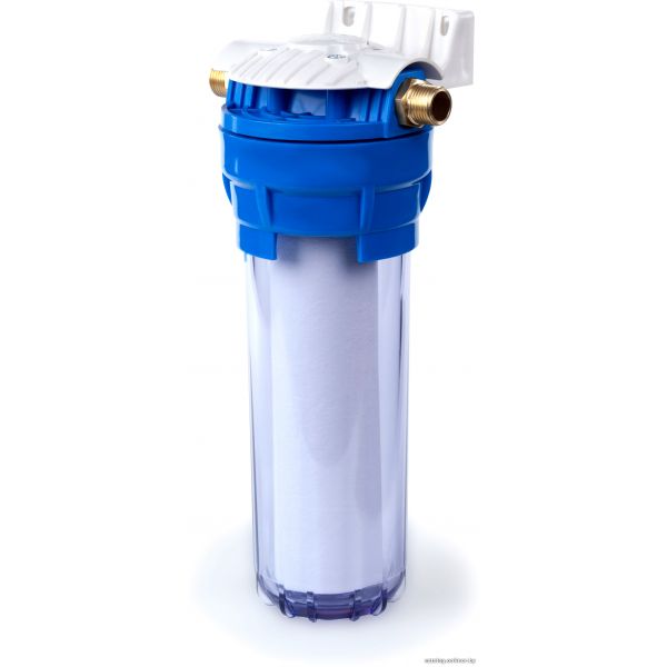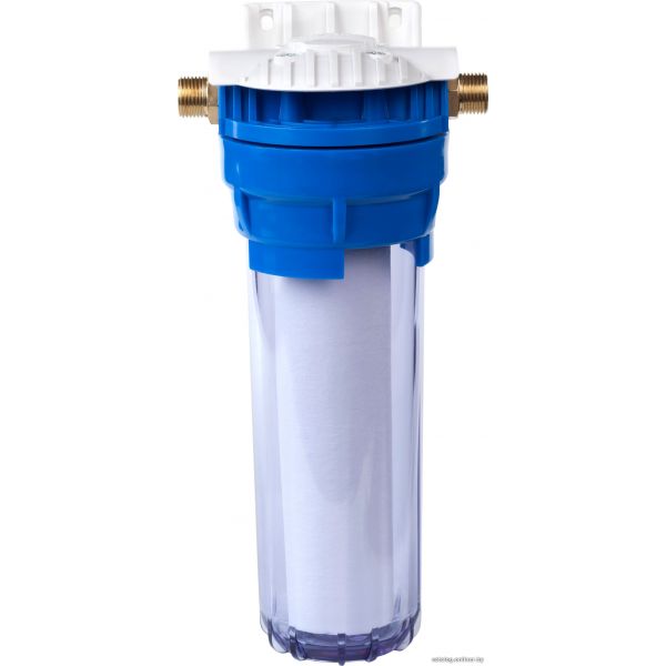 Корпус Гейзер 10SL 1/2" прозрачный изготовлен из прочного прозрачного полипропилена. Крышка корпуса – из синего полипропилена с металлическими ниппелями. Накидная гайка на корпусе значительно облегчает установку и замену картриджа. Корпус рассчитан на работу под давлением и установку на входе в систему холодного водоснабжения. В производстве корпусов используются материалы пищевого класса.