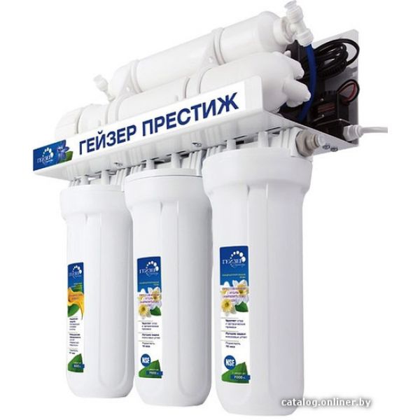 Процесс просачивания воды через мельчайшие поры достаточно медленный. Сделать его более эффективным позволяет помпа, устанавливаемая на некоторые модели системы Гейзер-Престиж. Если давление в водопроводной сети вашего дома меньше 3 атм, наличие помпы оказывается необходимым условием для работы системы.