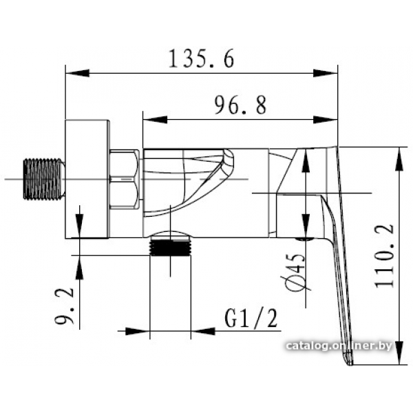 однорычажный смеситель для душа, монтаж на стену