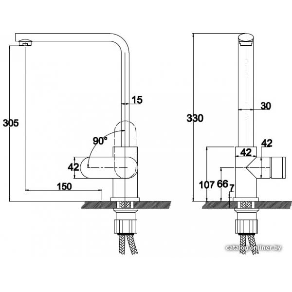 однорычажный смеситель для мойки, монтаж на раковину или столешницу