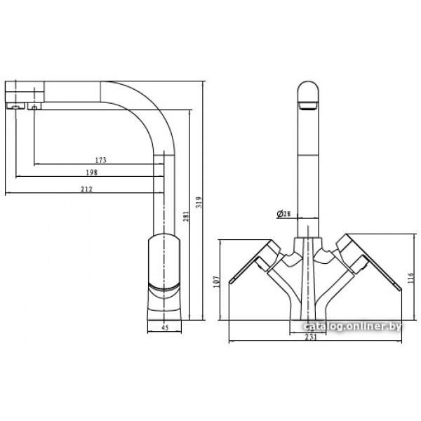 однорычажный смеситель для мойки, монтаж на раковину или столешницу