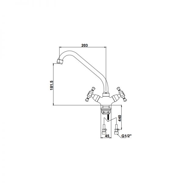 двухвентильный смеситель для мойки, монтаж на раковину или столешницу