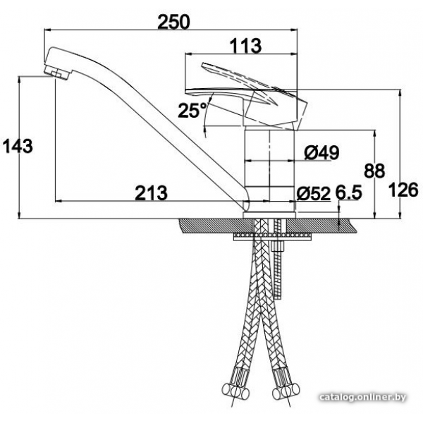 однорычажный смеситель для мойки, монтаж на раковину или столешницу