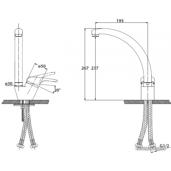 однорычажный смеситель для мойки, монтаж на раковину или столешницу