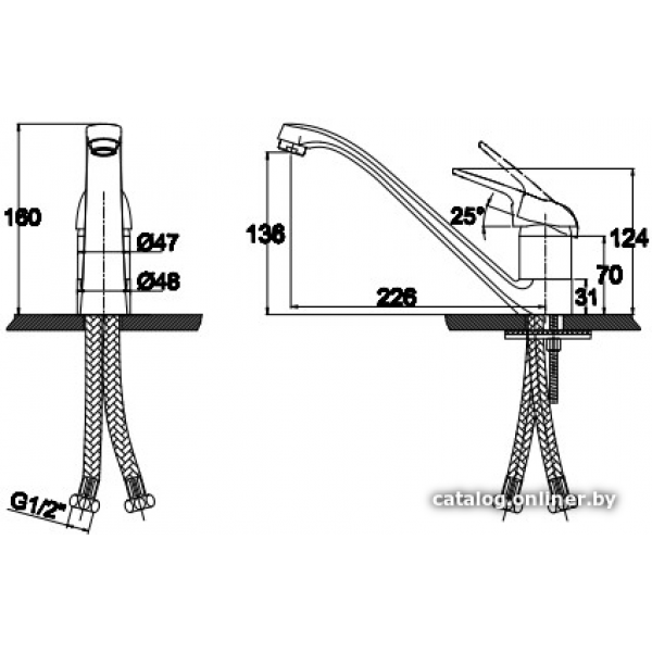 однорычажный смеситель для мойки, монтаж на раковину или столешницу