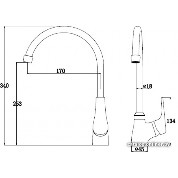 однорычажный смеситель для мойки, монтаж на раковину или столешницу