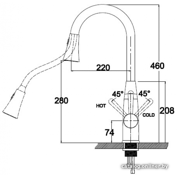 однорычажный смеситель для мойки, монтаж на раковину или столешницу