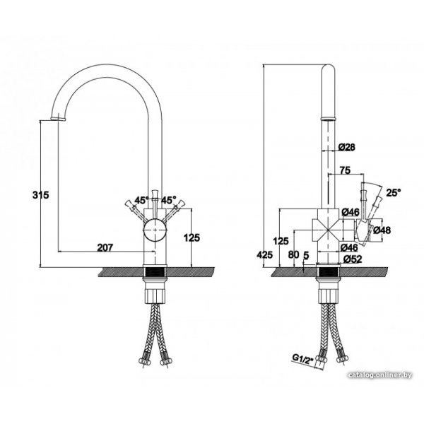однорычажный смеситель для мойки, монтаж на раковину или столешницу