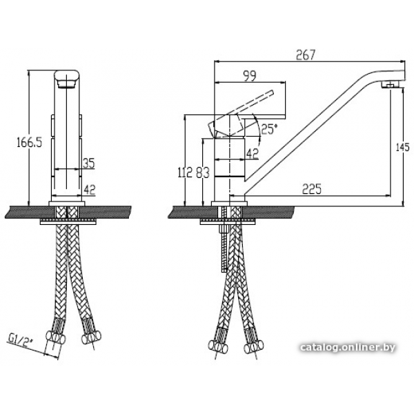 однорычажный смеситель для мойки, монтаж на раковину или столешницу