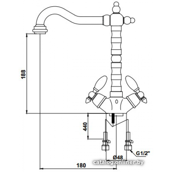 двухвентильный смеситель для мойки, монтаж на раковину или столешницу