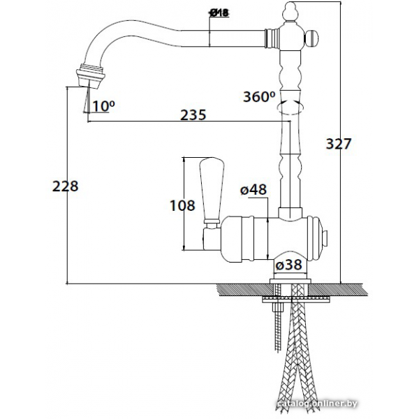 однорычажный смеситель для мойки, монтаж на раковину или столешницу
