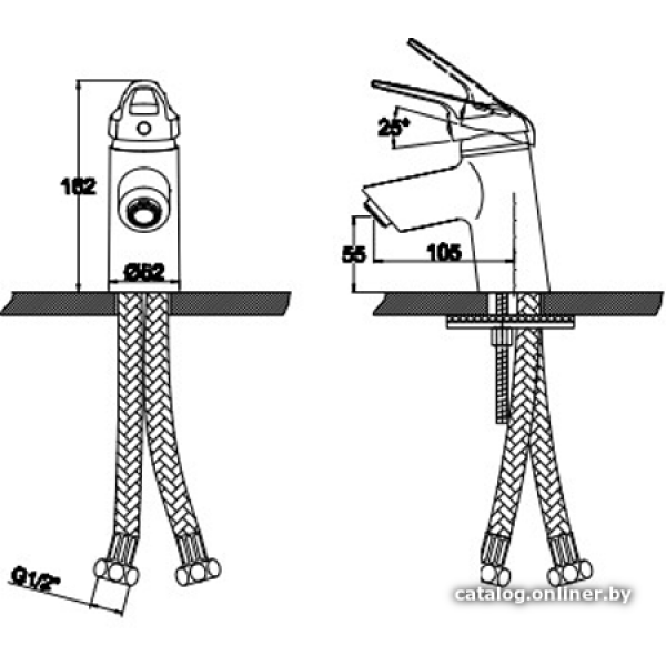 однорычажный смеситель для умывальника, монтаж на раковину или столешницу