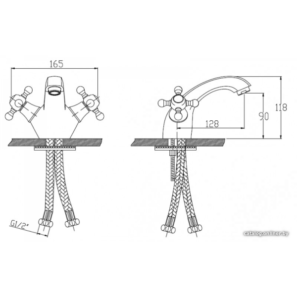 двухвентильный смеситель для умывальника, монтаж на раковину или столешницу