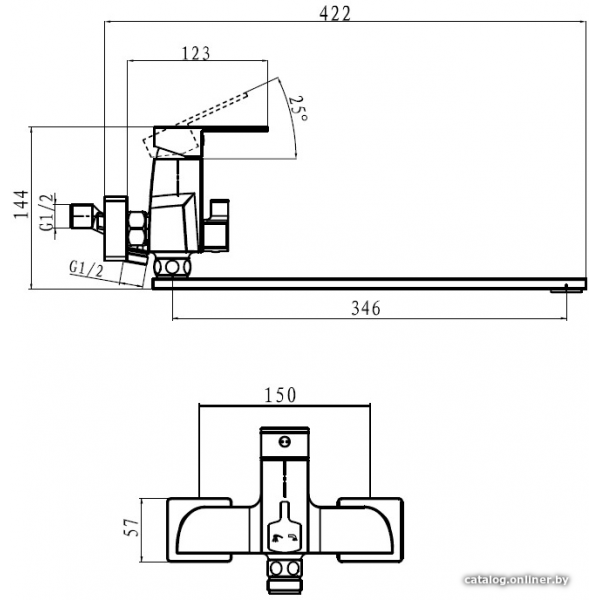 однорычажный смеситель для ванны и душа, монтаж на стену
