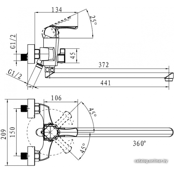однорычажный смеситель для ванны и душа, монтаж на стену