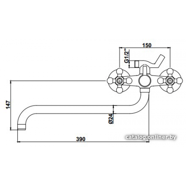 двухвентильный смеситель для ванны и душа, монтаж на стену