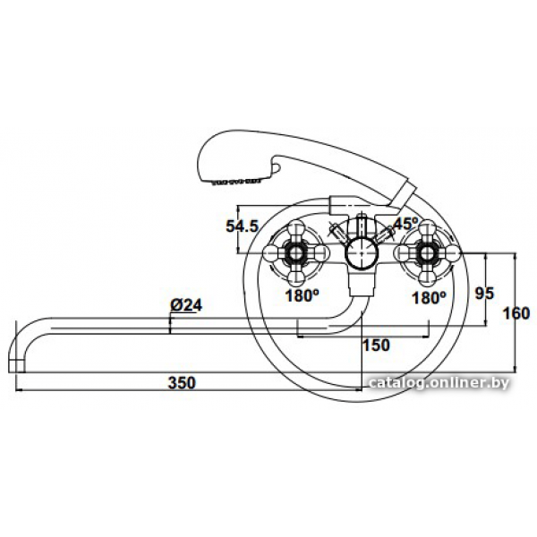 двухвентильный смеситель для ванны и душа, монтаж на стену