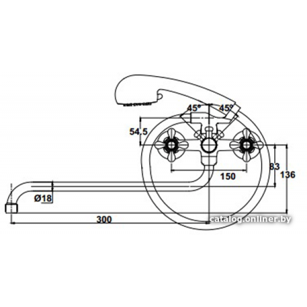 двухвентильный смеситель для ванны и душа, монтаж на стену