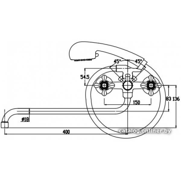 двухвентильный смеситель для ванны и душа, монтаж на стену