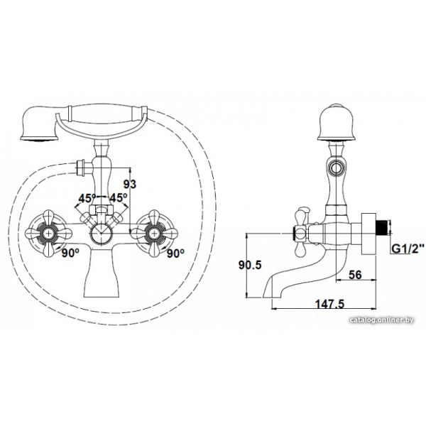 двухвентильный смеситель для ванны и душа, монтаж на стену