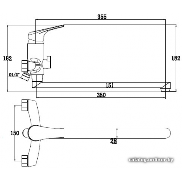 однорычажный смеситель для ванны и душа, монтаж на стену