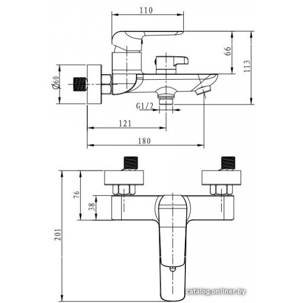 однорычажный смеситель для ванны и душа, монтаж на стену