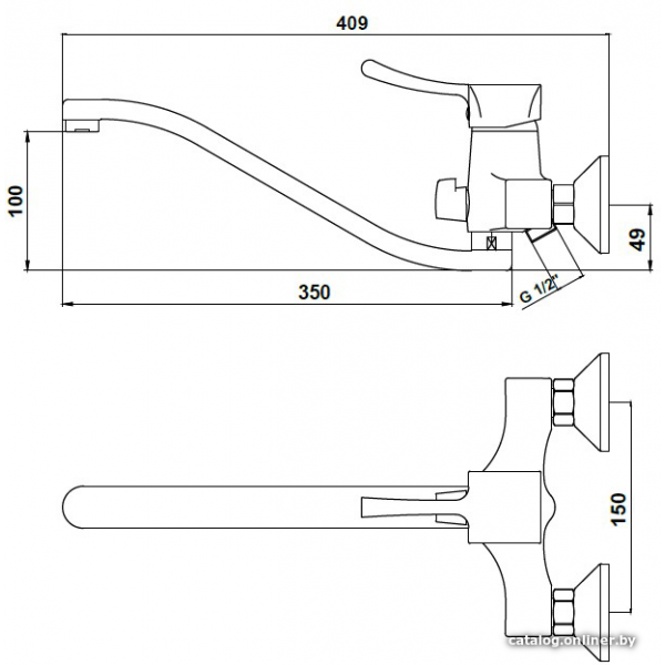 однорычажный смеситель для ванны и душа, монтаж на стену