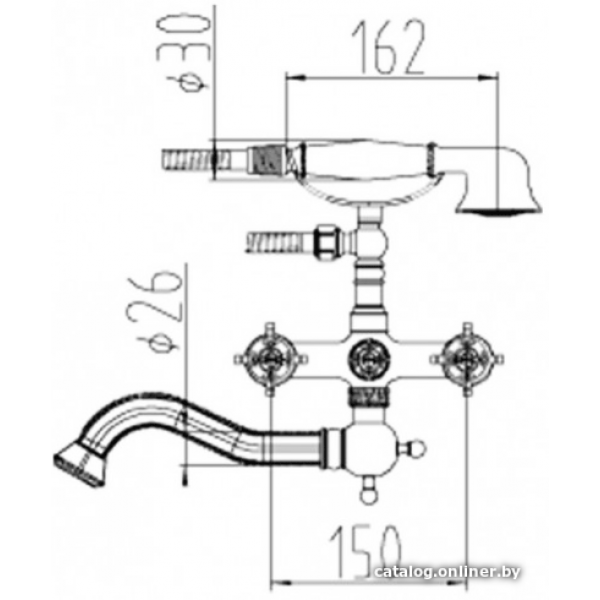 двухвентильный смеситель для ванны и душа, монтаж на стену