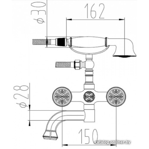 двухвентильный смеситель для ванны и душа, монтаж на стену