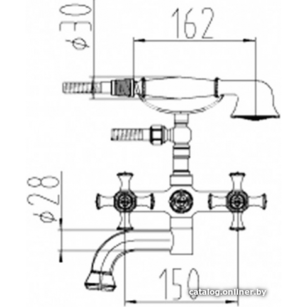 двухвентильный смеситель для ванны и душа, монтаж на стену